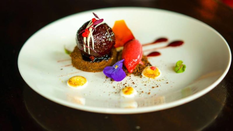 You’ll find love at first bite when you taste the Black Forest Bombe—a delectable concoction of cherry chocolate mousse, kirsch crème brulee, and dark chocolate cake with tart cherry sorbet.