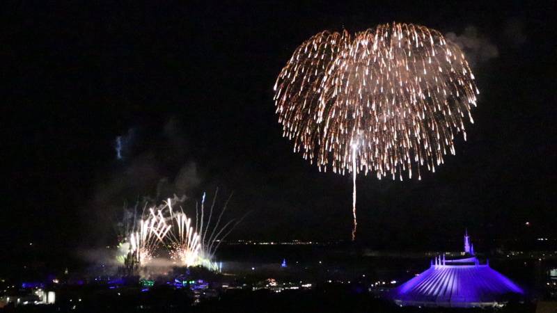 It came to that time of the night and the restaurant staff allowed people to walk out onto the observation deck. It was a beautiful night even from that height and the time period before the show allowed us to do some long distance spotting. You can see EPCOT, Disney’s Hollywood Studios, ICON Park and Universal landmarks and of course all of the monorail resorts with boats remaining busy.