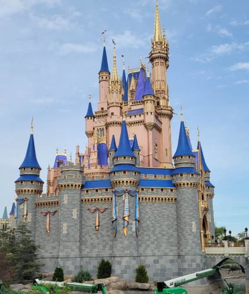 The castle is also getting some new blue paint on its spires and roof areas. This replaces the previous more iridescent purple/blue color that was added in 2020, but is already fading in the Florida sun.