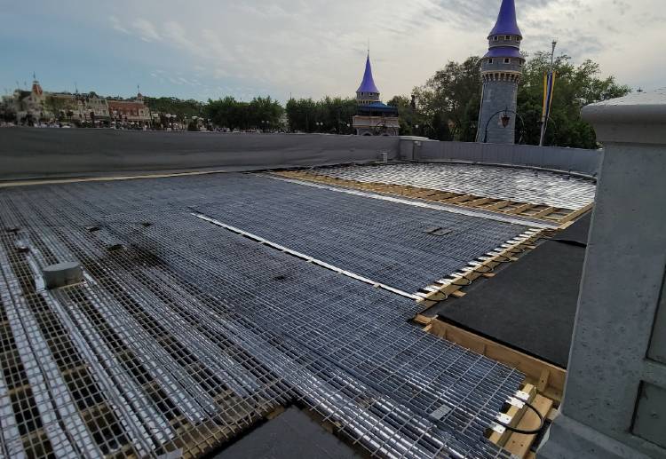 Additionally, the Castle Forecourt stage is getting some interesting upgrades. The floor has been removed entirely and a new subfloor is being added with what looks like heating coils (like you might have in your bathroom floor at home). In theory, this should help the stage dry out quicker after those famous central Florida afternoon showers.