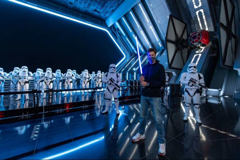 Making good on his “I’m going to Disney World” promise made after winning his 7th Superbowl championship as an NFL quarterback, Tom Brady has landed on the planet Batuu and explored Star Wars: Galaxy’s Edge at Disney’s Hollywood Studios.