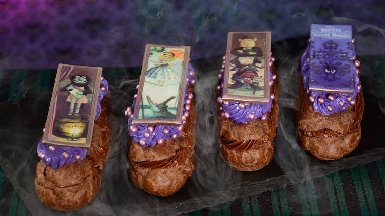Can’t wait until next month? PizzeRizzo at Disney’s Hollywood Studios already has four different themed eclairs, inspired by the Muppets stretching portraits featured in “Muppets Haunted Mansion.” You can see them in the top photo.