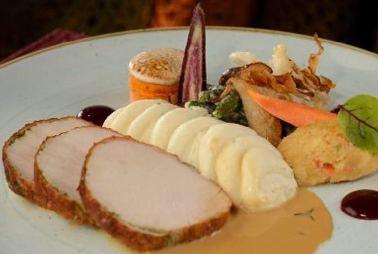 - Thanksgiving Plate – Turkey roulade, fine-herbs whipped potatoes, maple-glazed carrots, sweet potato pave, wild mushrooms, green bean casserole, cornbread dressing, cranberry gel, and turkey gravy (available Nov. 25)