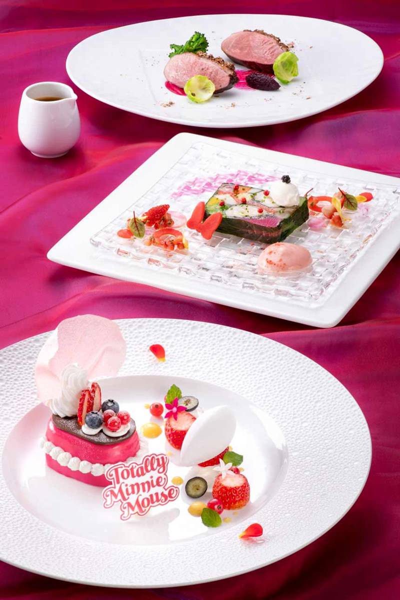 Canna in Tokyo Disneyland Hotel will offer a lunch course featuring dishes with a motif of Minnie’s bows and polka dots, as well as a special drink themed to Cheerful Minnie Mouse.
