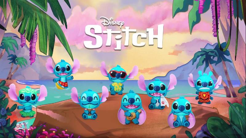 There are 8 Stitches in total: Surfer Stitch, Experiment 626 Stitch, Cool Stitch, Sippin’ Stitch, Ukelele Stitch, Hula Stitch, Sittin’ Stitch, and Mischief Stitch.