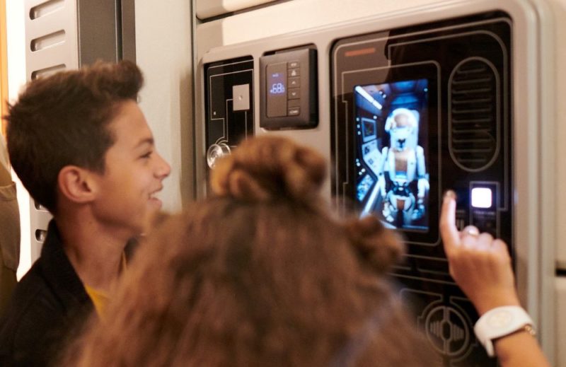Guests who board the immersive role play focused Star Wars Galactic Starcruiser Halcyon for their two night adventure will have the opportunity to interact with different characters in many locations across the ship. However, there is one character who will come to passengers on the Halcyon right in their cabin – D3-09, the ship’s logistic droid.